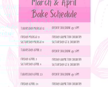 Freshly baked from scratch, we cater to Hamilton, GTA, and offer worldwide shipping. Explore our unique merchandise and upcoming baking videos and cookbooks for all baking enthusiasts.